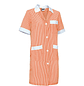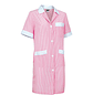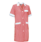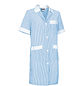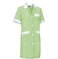 Bata de limpieza larga Alanis, es una bata de trabajo con rayas y manga corta. Confeccionado con tejido ligero de hilo tintado, rayas verticales, resistente y duradero. Cuello camisero con cuello de pico, cómodo y refrescante. Se cierra con un botón central de derecha a izquierda y en la cintura tiene una cinta cosida en la espalda para mayor comodidad.