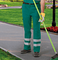 Pantalones de trabajo reflectantes Drill son pantalones de múltiples bolsillos de alta visibilidad hechos con tela de sarga y mezcla de algodón y poliéster que brindan más durabilidad y resistencia. Lleva cosidas dos cintas reflectantes en las perneras para mayor seguridad.