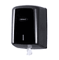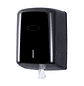 Dispensador de papel mecha fabricado con material ABS negro de alta calidad y resistencia. Tiene una capacidad para una bobina máximo de 205 mm de diámetro apoyada en su lateral y sin mandril.