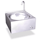 Lavamanos de pared está fabricado en acero inoxidable, un material resistente y duradero. Su funcionamiento es con un pulsador con accionamiento desde la rodilla, lo que garantiza un correcto uso higiénico. Tiene incluido una válvula mezcladora antirretorno, rebosadero y borde antiderrame.