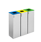 Ecopuntos inox Madrid con una excelente relación calidad precio, fabricada totalmente en acero inoxidable satinado com 3 compartimentos de 45 litros cada uno. Compartimentos separados para cada residuo.