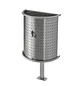 Papelera urbana semicircular, fijación de pared con capacidad de 32 litros, fabricada en chapa de acero inoxidable satinado perforada de 1,5 mm.